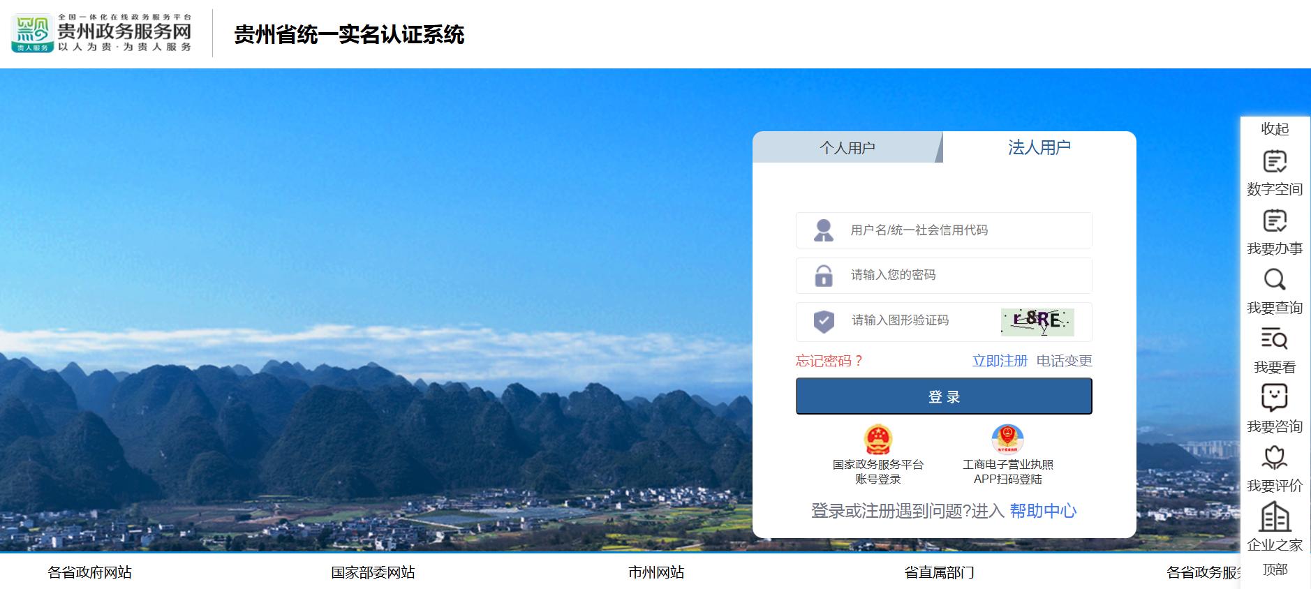 关于用户账号的登录、注册、认证等问题,请访问“贵州省统一实名认证系统”,其网址为:https://smrz.zwfw.guizhou.gov.cn/。