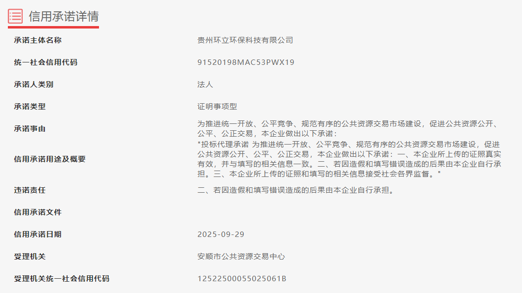 贵州环立环保科技有限公司-信用承诺-信用中国(贵州)