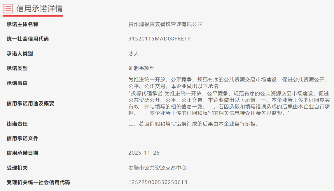 贵州鸿福贵宴餐饮管理有限公司-信用承诺-信用中国(贵州)