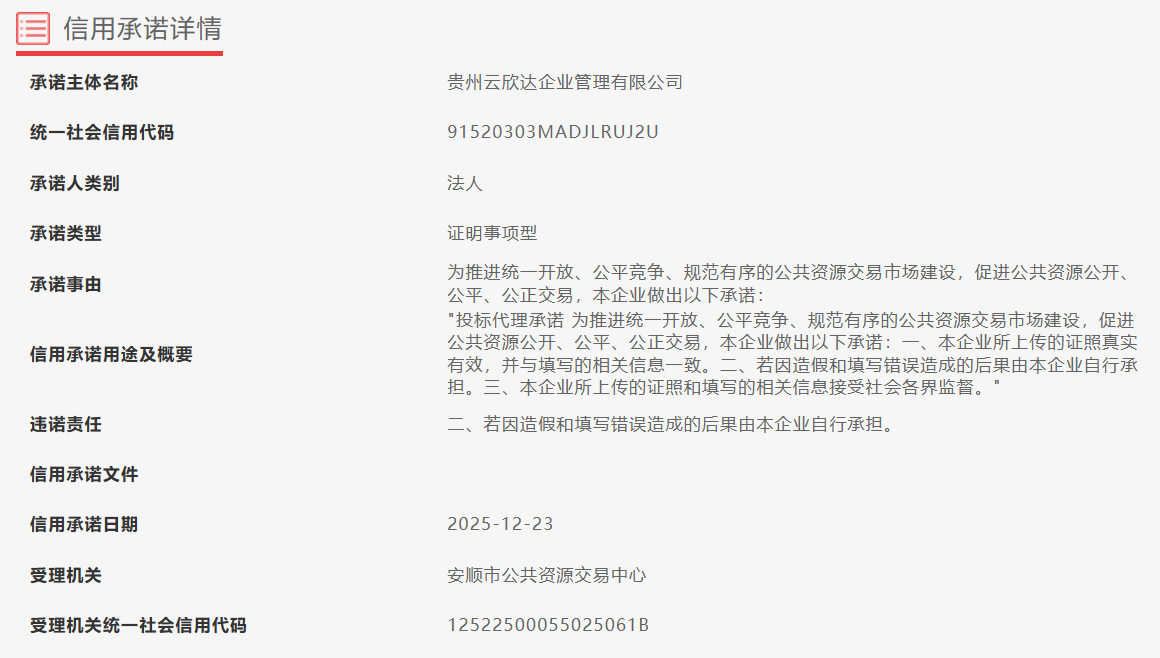贵州云欣达企业管理有限公司-信用承诺-信用中国(贵州)