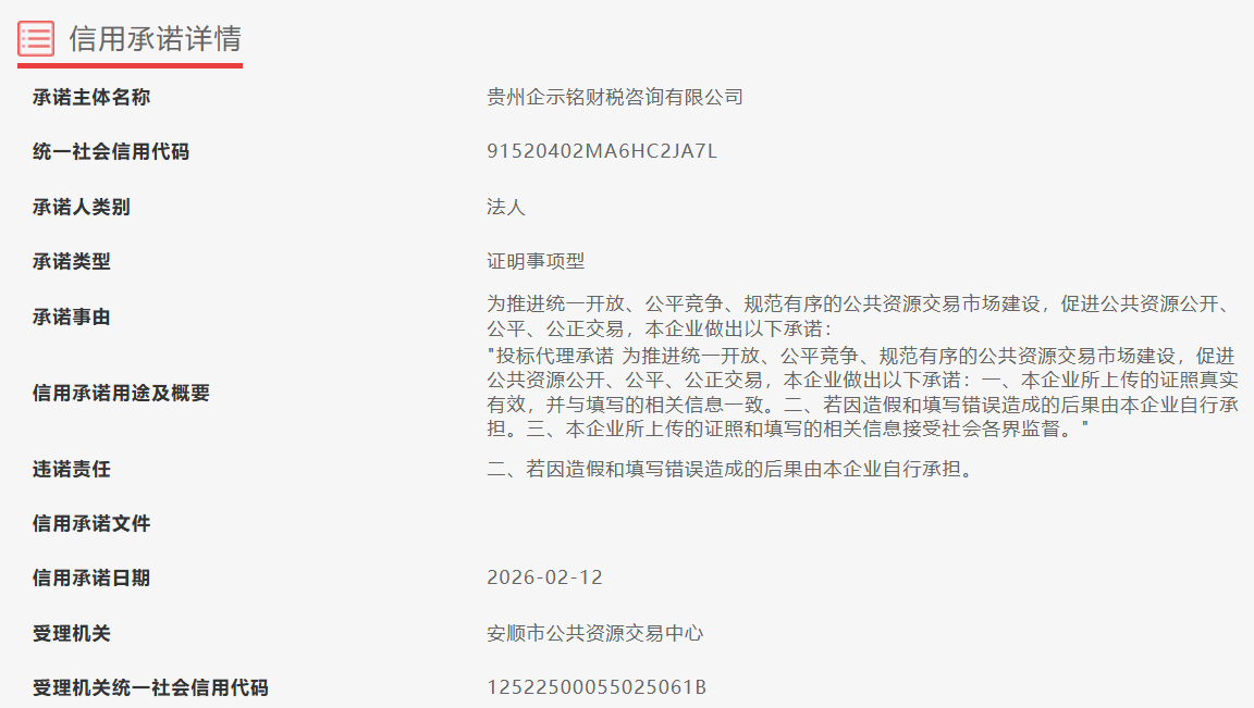 贵州企示铭财税咨询有限公司-信用承诺-信用中国(贵州)