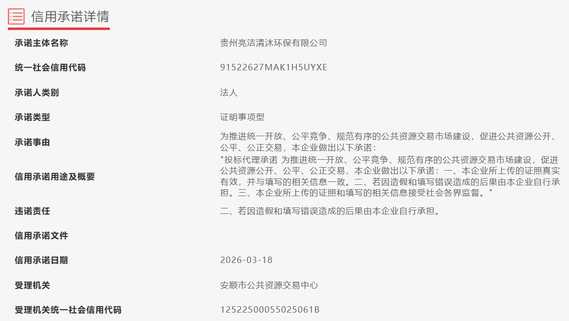 贵州亮洁清沐环保有限公司-信用承诺-信用中国(贵州)